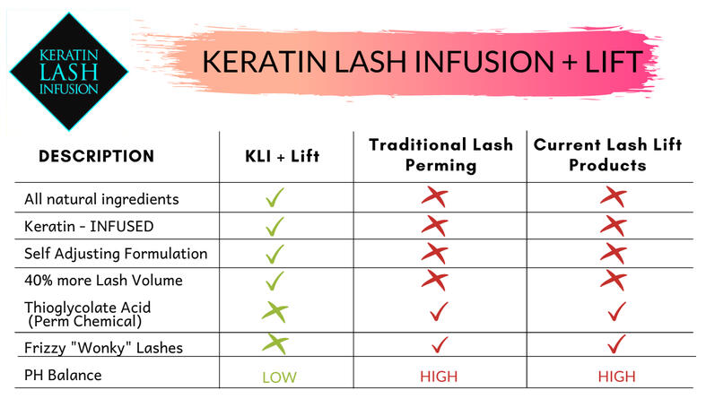 This is not your old ordinary lash lift or eyelash extensions! Our patented Keratin Lash Infusion infuses REAL KERATIN (plant based) into each lash. The ONLY SYSTEM in the market that is true Keratin Infusion (clinically proven).